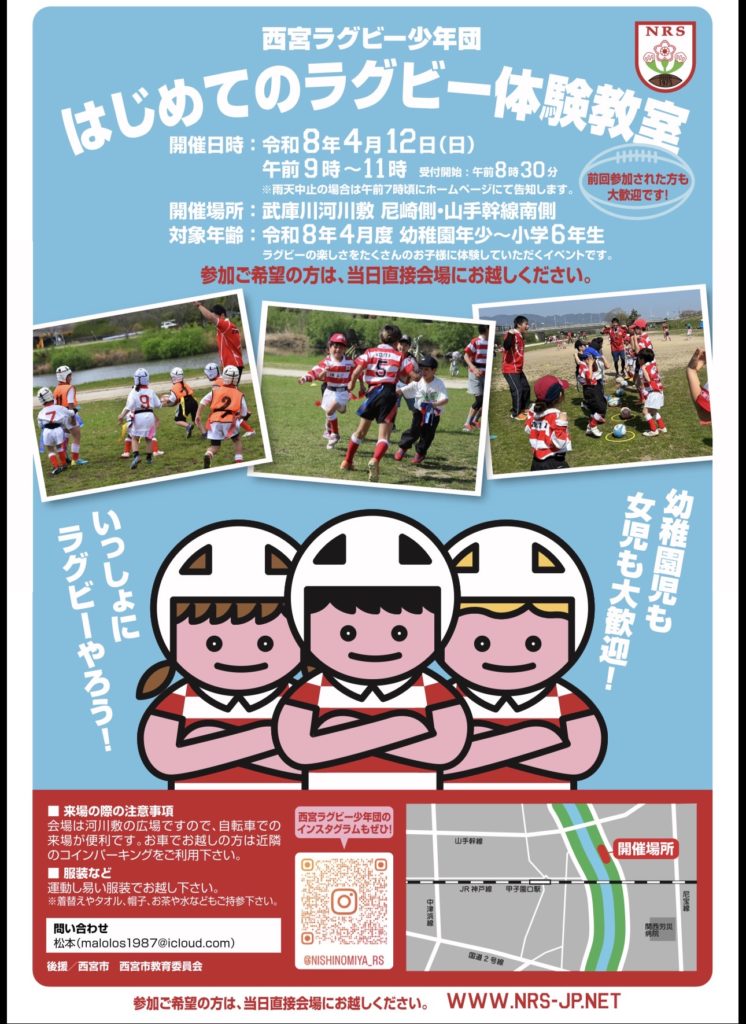 4月12日(日)に「はじめてのラグビー体験教室」を開催します!