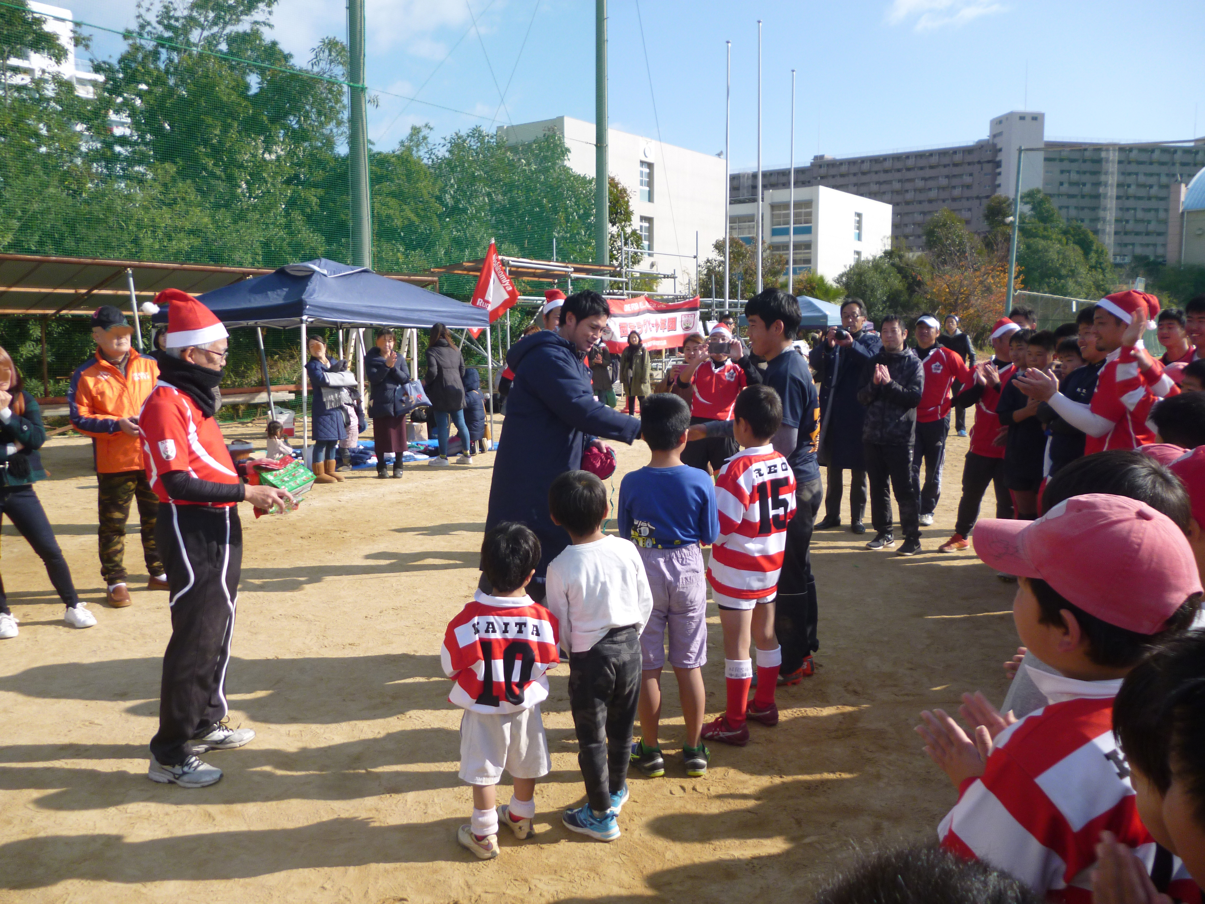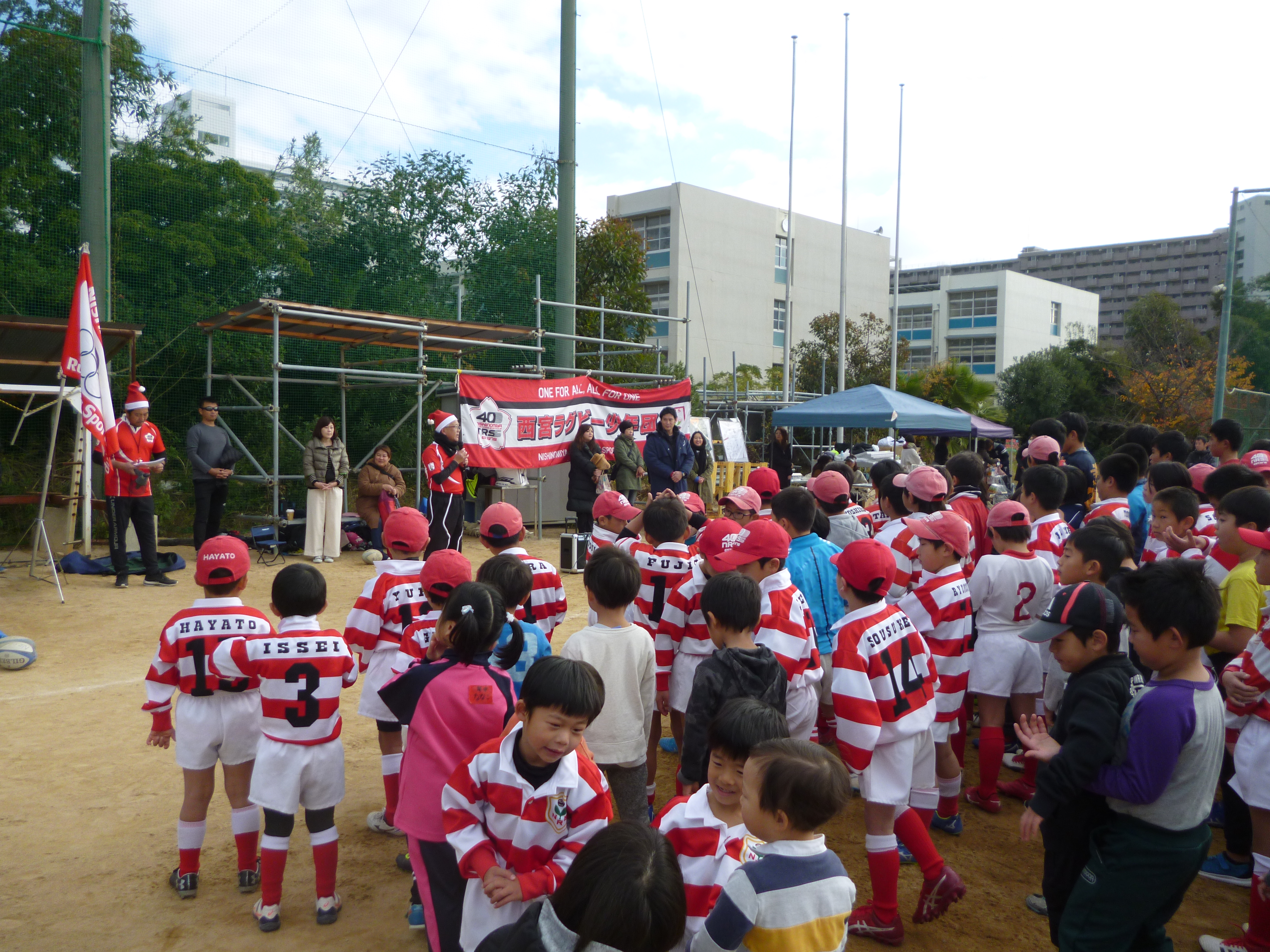 ご協力いただきました濱島さん、濱島さんの所属する早駒運輸の皆様、グラウンドを快くお貸しいただいた西宮南高校中井先生、お手伝いいただいた西宮ジュニアラグビークラブのコーチや選手の皆様、そして、当団が誇る素晴らしいコーチや育成者の皆様本当にありがとうございました。