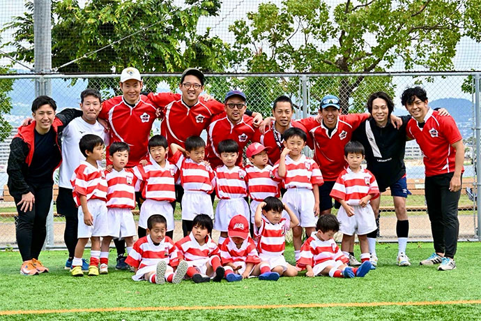 ラグビーが上手くなる事はもちろん大切にしていますが、ラグビーというスポーツを通して挨拶や礼儀を身に付け、仲間と一緒に頑張る中で嬉しさや悔しさを感じ、子供たちの成長に繋がるようにコーチ・保護者みんなで取り組んでいます。